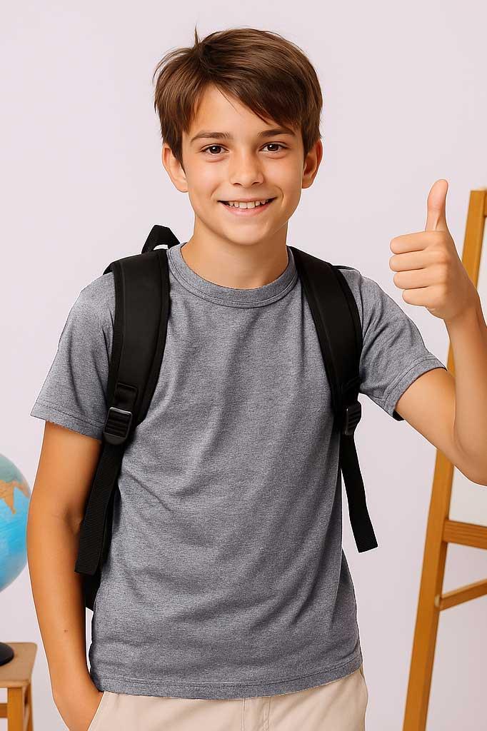 Antrasit Melanj Baskısız Çocuk Tişört – Yönetmeliğe Uygun, Şık ve Rahat Seçim