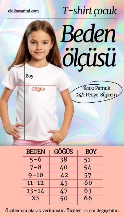 Tişört unisex kalıpta üretilmiştir; yani hem kız hem erkek öğrenciler rahatlıkla kullanabilir. 6-12 yaş arası tüm ilkokul öğrencilerine hitap edecek şekilde beden seçenekleri mevcuttur. Kalıbı ne bol ne dar; tam ideal ölçülerdedir. Dikiş kalitesi yüksek, omuz ve kol yapısı sağlamdır. Çocukların gün içindeki aktif yapısına karşı dayanıklı bir üründür.