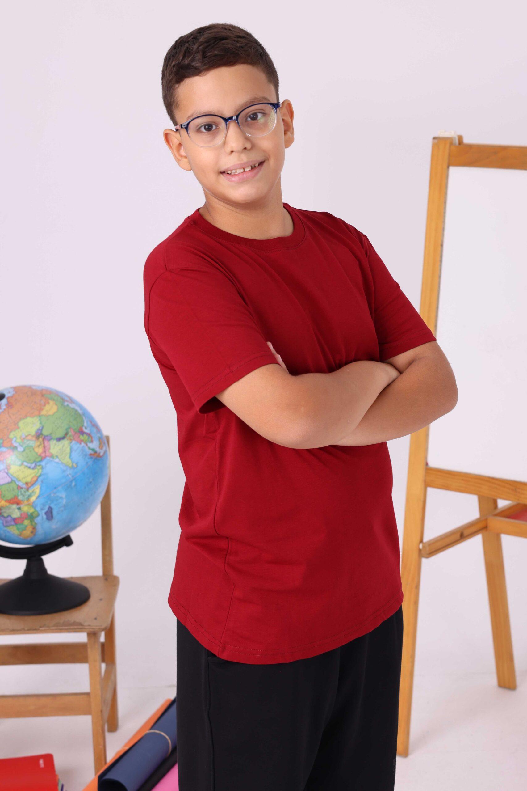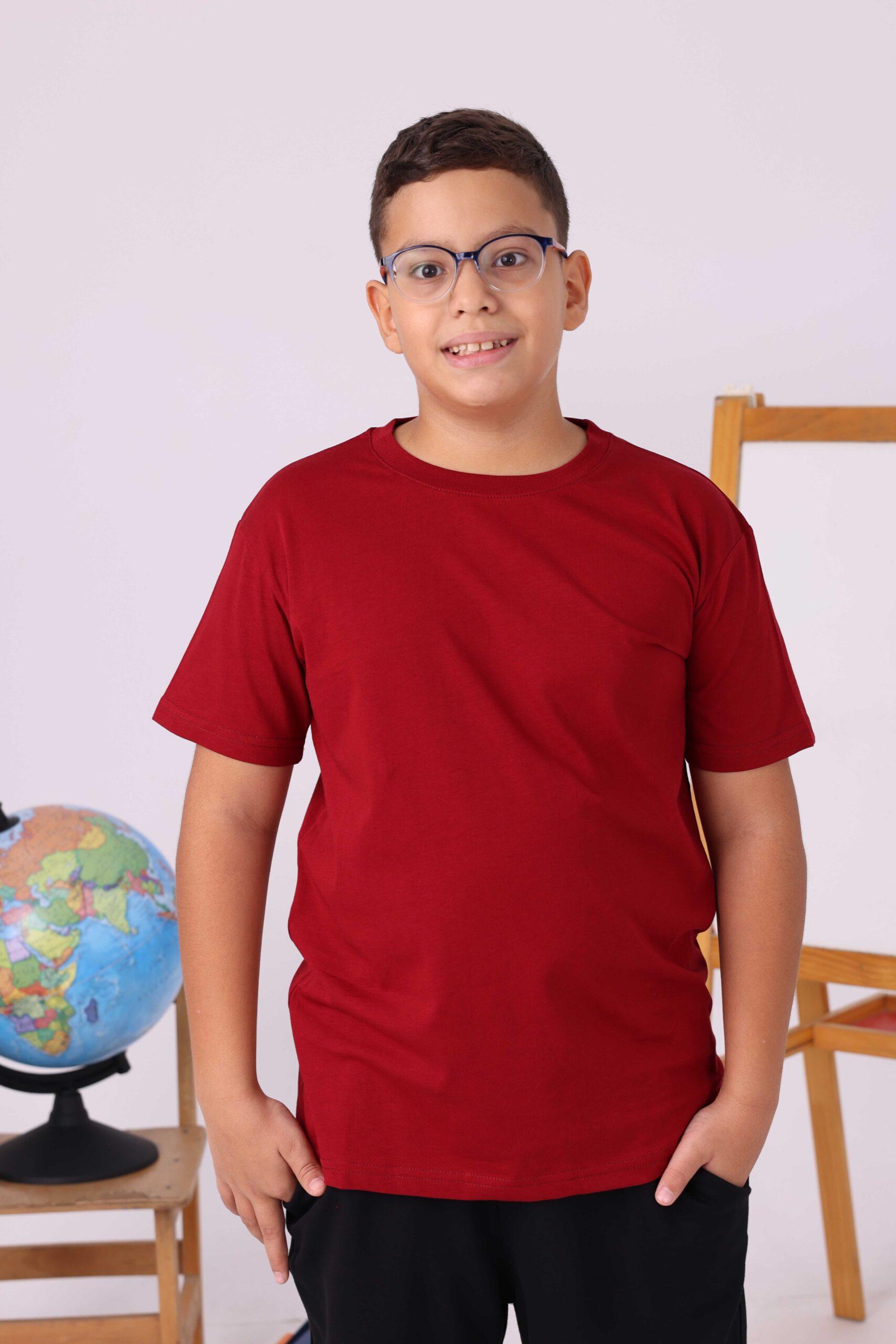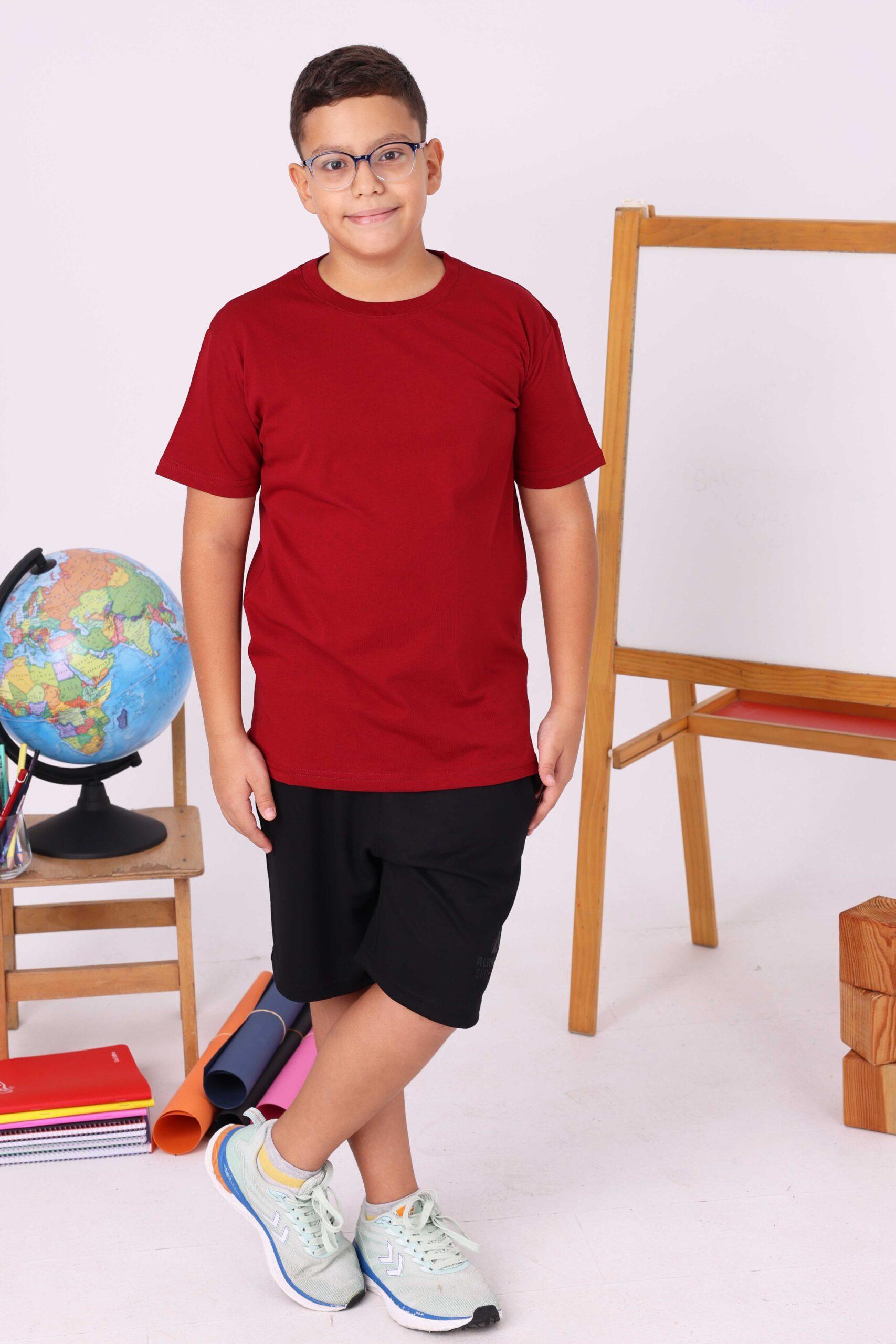 Bordo Renk Kısa Kollu Premium Çocuk Tişört – Yönetmeliğe Uygun, Konforlu ve Dayanıklı
