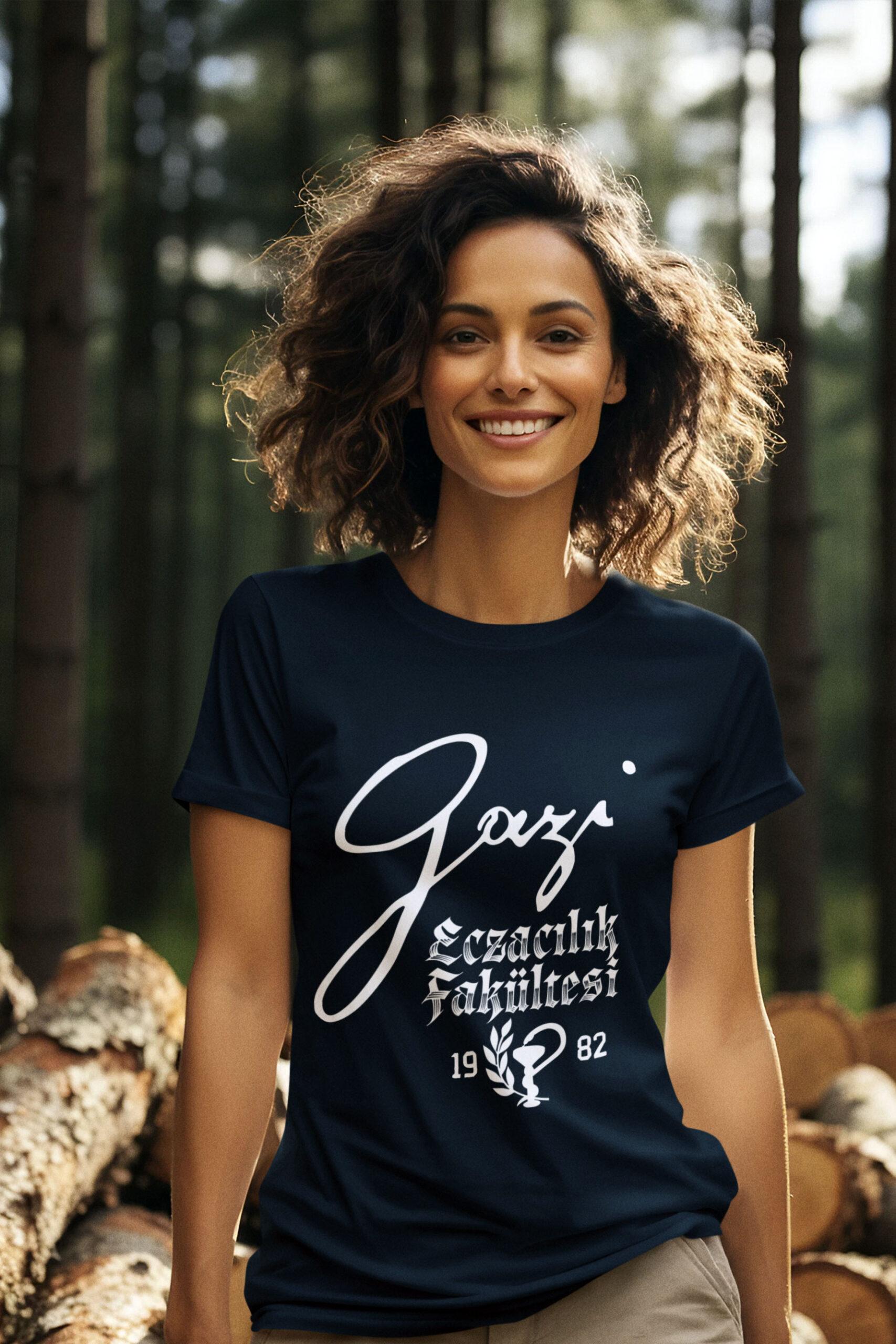 Göğüs kısmında yer alan “Gazi” imzası, okulun kültürünü yansıtırken, altındaki “Eczacılık Fakültesi 1982” detayı fakültenin köklü geçmişine gönderme yapar. Tasarımda kullanılan modern tipografi ile geleneksel detaylar bir araya getirilerek nostaljik ama aynı zamanda trend bir görünüm kazandırılmıştır. Bu sayede hem öğrenciler hem de mezunlar için gururla giyilebilecek bir sembol haline gelir.