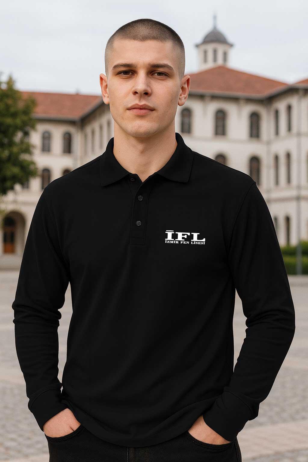 İzmir Fen Lisesi Siyah Polo Yaka Uzun Kollu Tişört