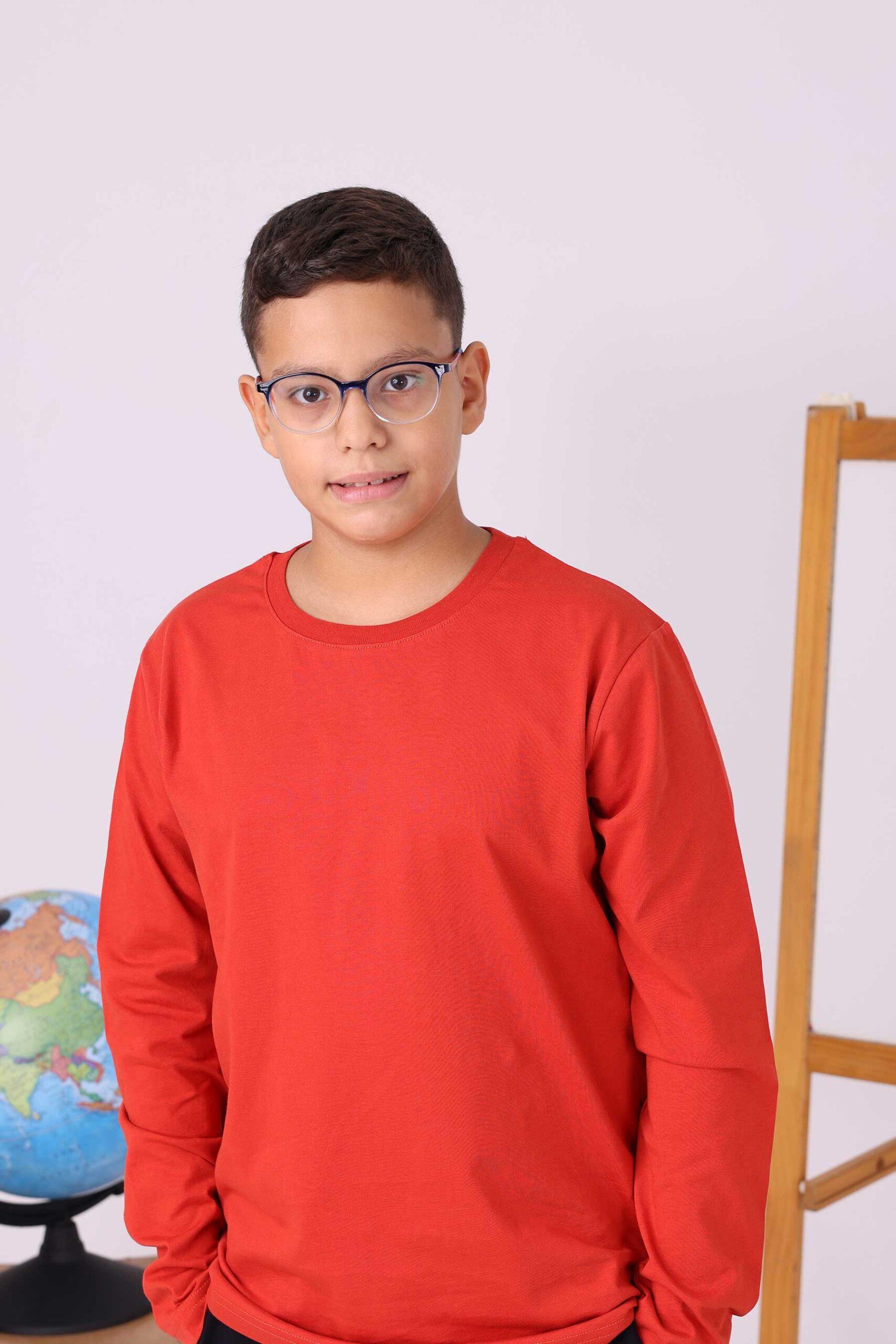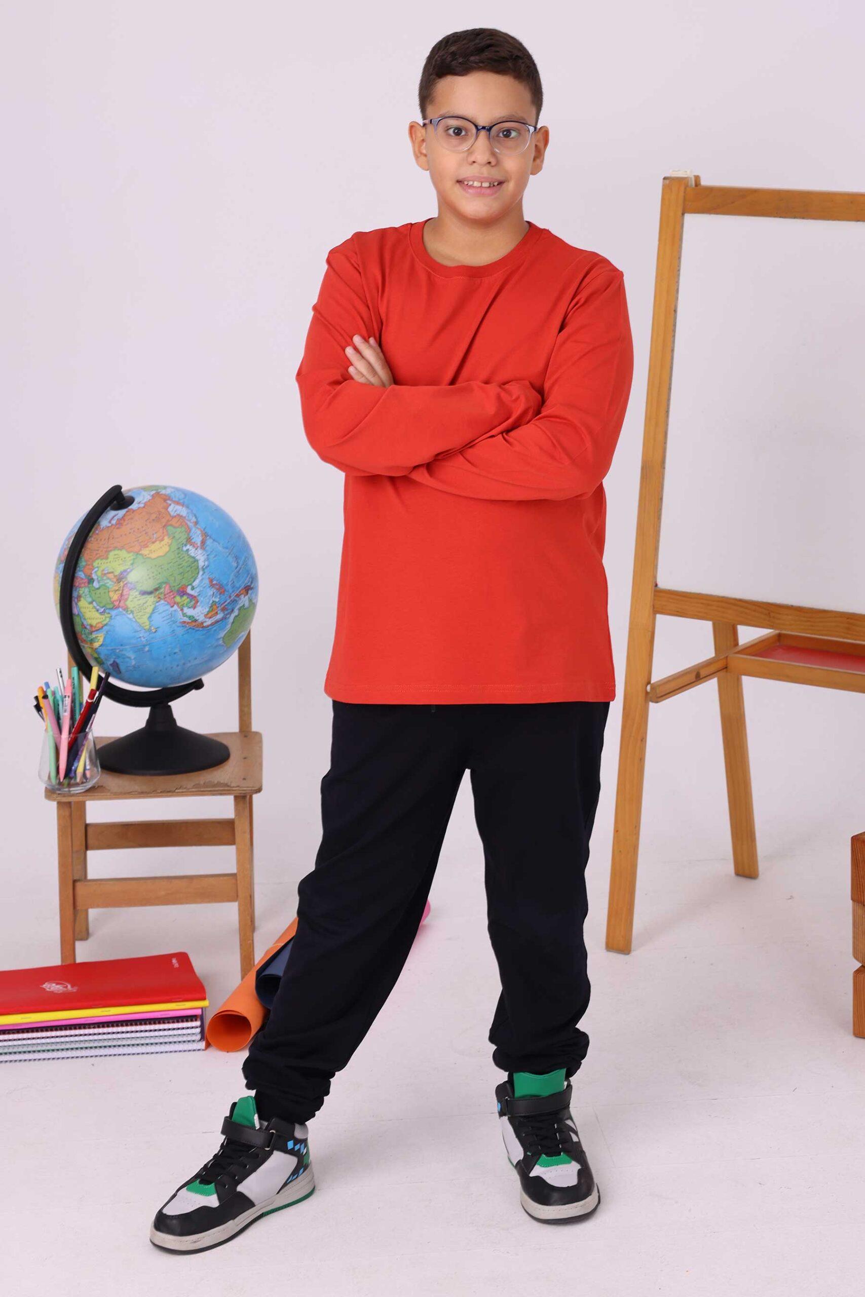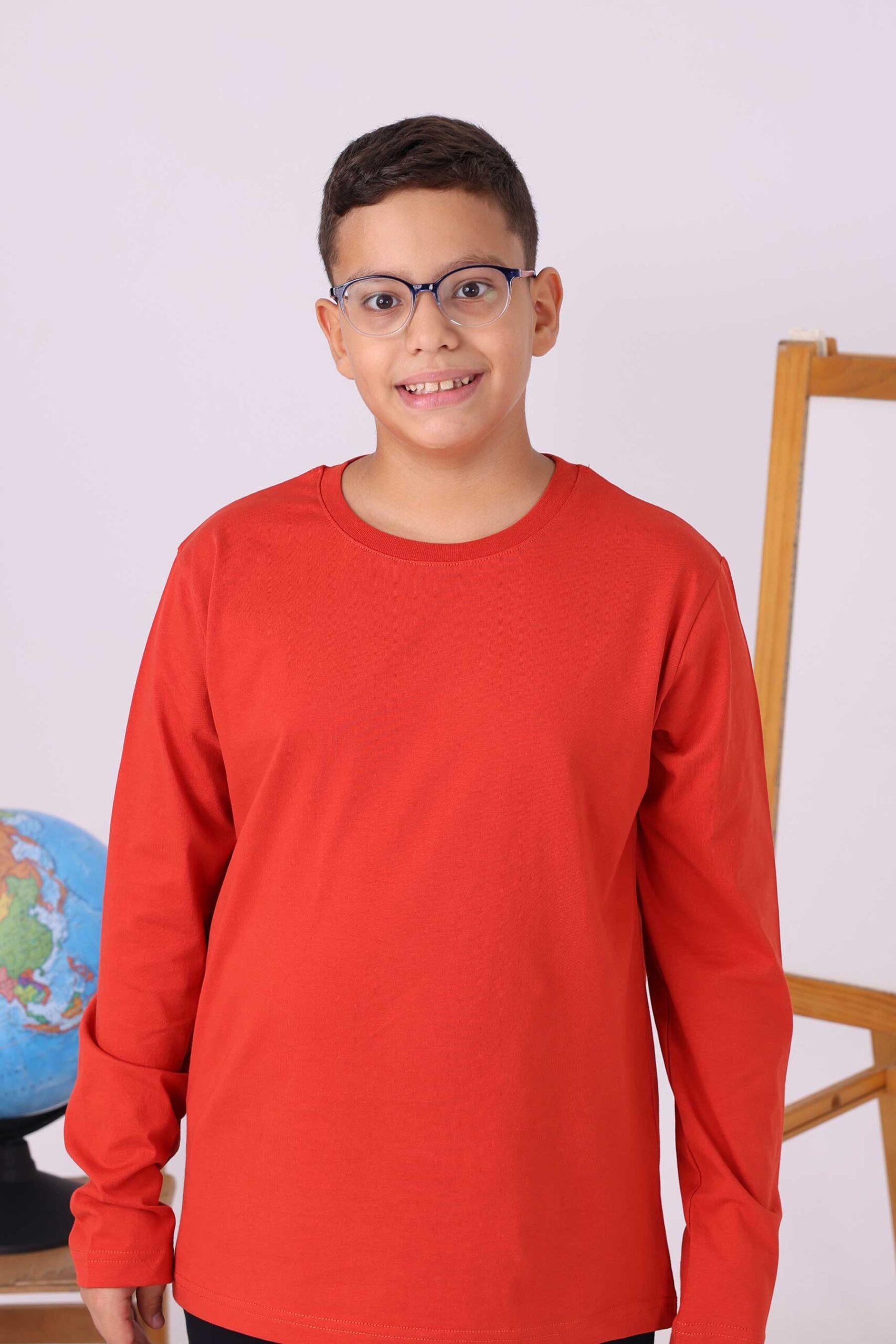 Okul kıyafetlerinde hem şıklık hem de dayanıklılık arayan veliler için hazırlanan kiremit renk uzun kollu tişört, çocukların günlük okul yaşamında rahatça kullanabileceği şekilde tasarlanmıştır. %100 pamuk kumaşı sayesinde nefes alan bir yapıya sahiptir ve çocukların gün boyu terlemeden, rahat bir şekilde derslere odaklanmalarını sağlar. Pamuklu dokusu, ciltle temas eden yüzeyin yumuşak olmasını garantiler, böylece hassas ciltlerde tahriş riskini minimuma indirir.