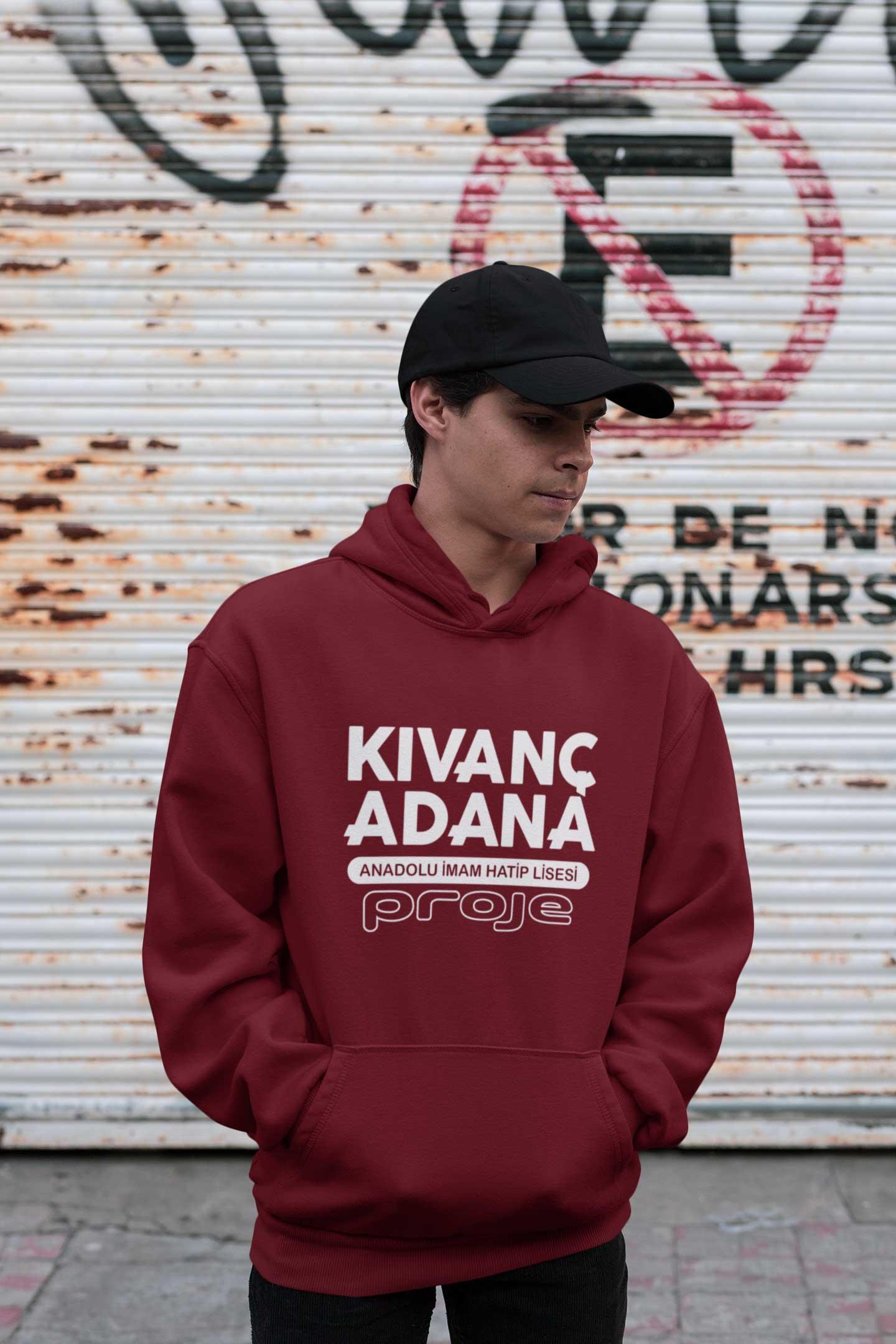 Kıvanç Adana Anadolu İmam Hatip Lisesi’nin proje okul ruhunu taşıyan bu bordo kapüşonlu sweatshirt ile hem rahat hem de dikkat çekici bir stil seninle.