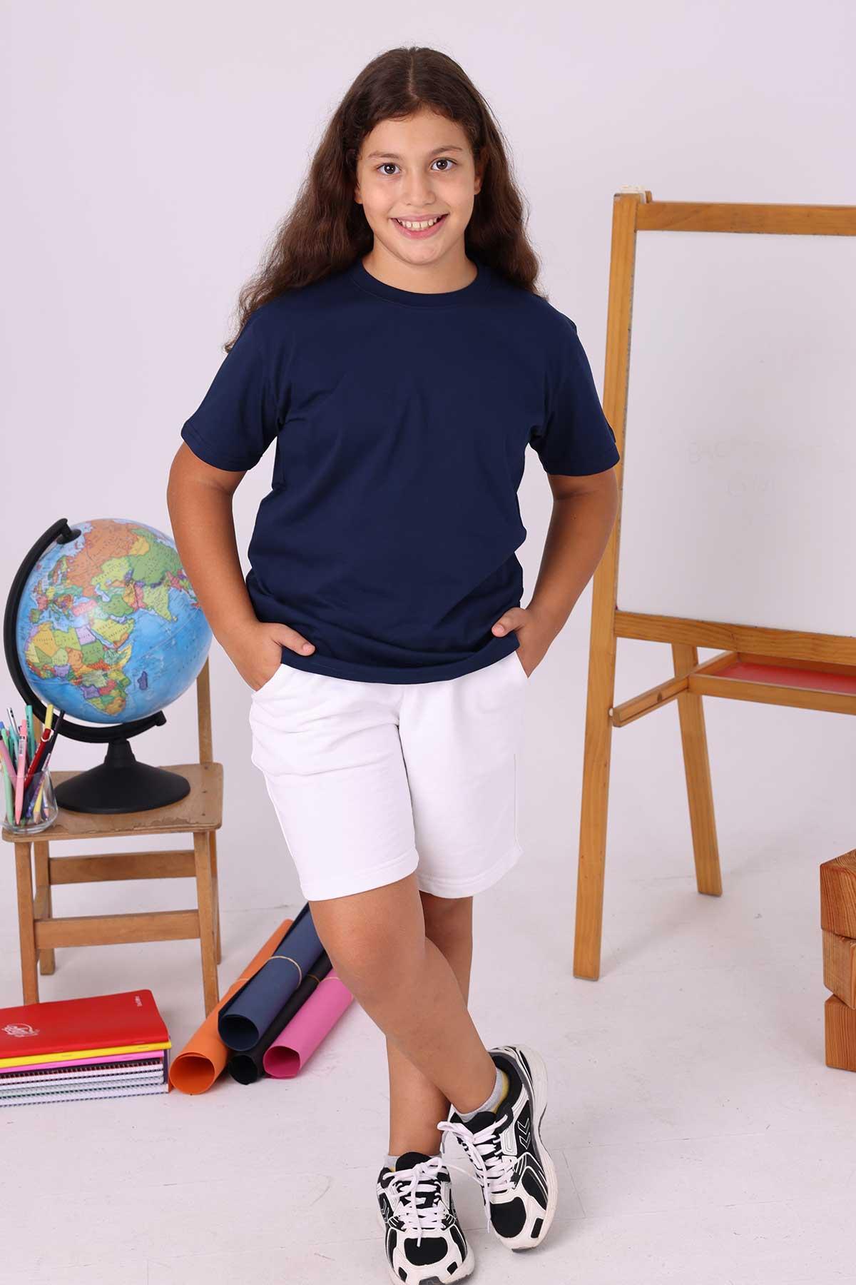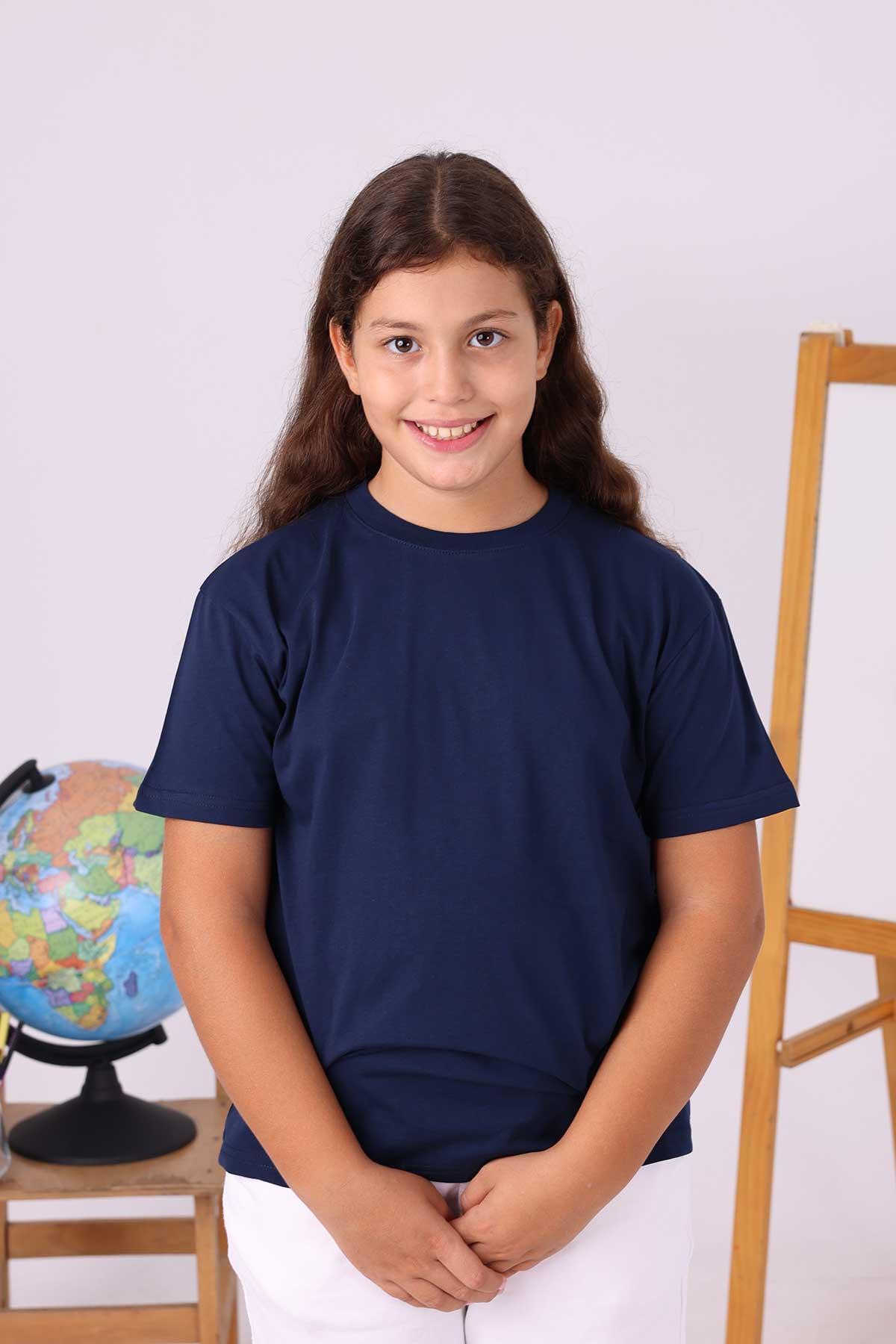 Lacivert Sıfır Yaka Baskısız Çocuk Tişört – Okulda ve Günlük Hayatta Mükemmel Tercih