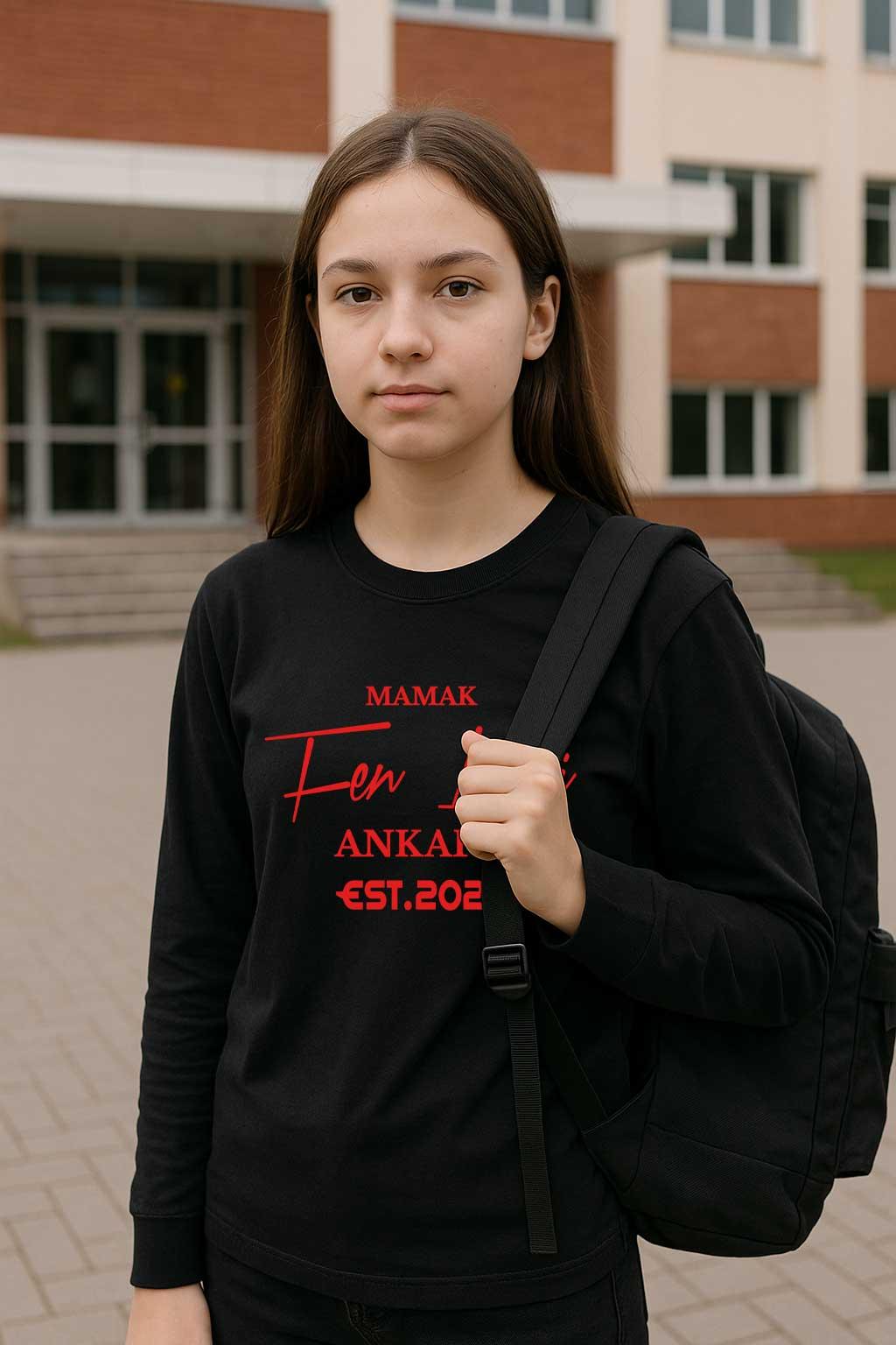 Okul kıyafetleri sadece giyilmek için değil, aynı zamanda öğrenciler arasında aidiyet duygusu oluşturmak için de önemlidir. Mamak Fen Lisesi için hazırlanan bu siyah uzun kollu tişört, öğrencilerin birlik ve beraberlik duygusunu pekiştirirken aynı zamanda şık bir okul kültürü de yaratır. Özel tasarım yazı tipleri ve baskı kalitesiyle bu ürün, sıradan bir okul tişörtünden çok daha fazlasını sunar.