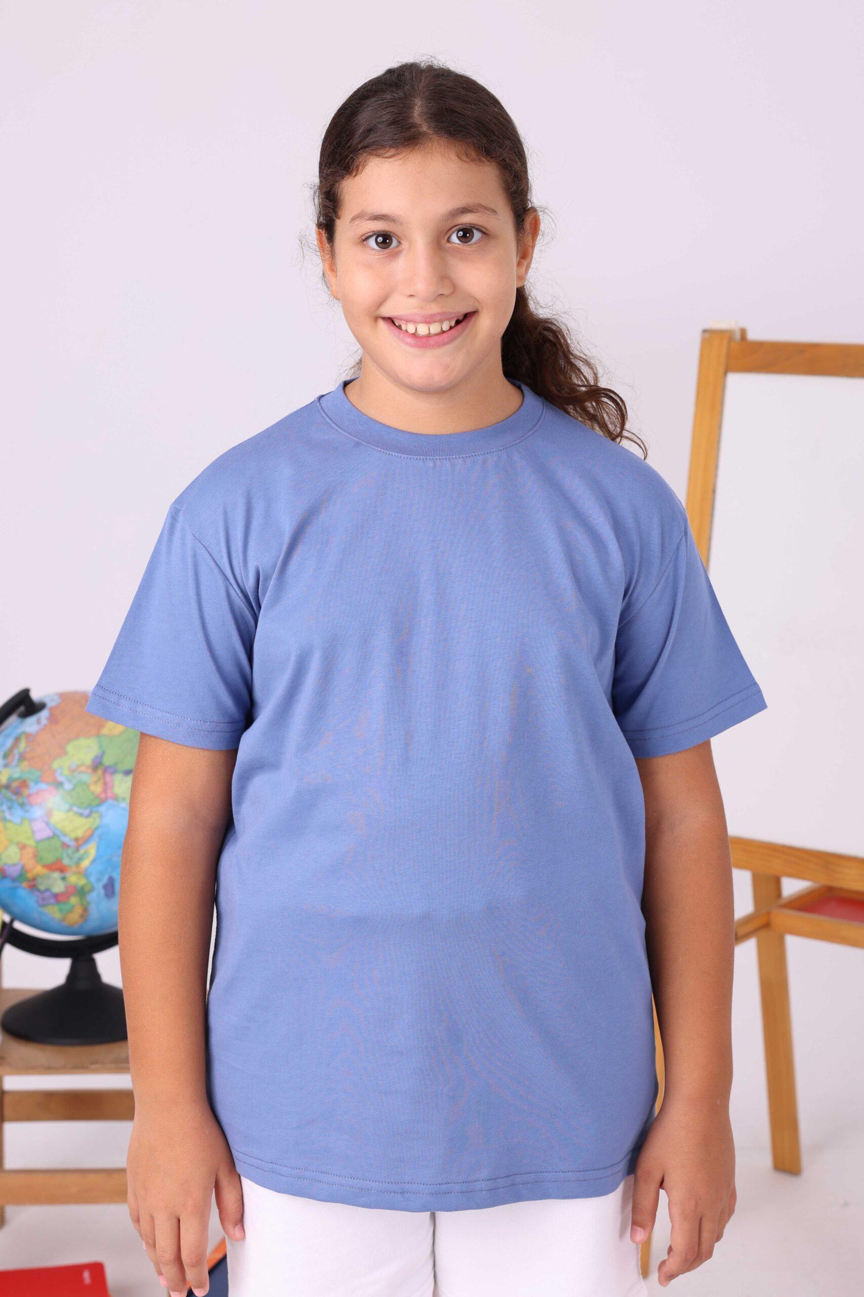Pastel Mavi Çocuk Sıfır Yaka Baskısız Tişört – Okul Yönetmeliğine Uygun, Rahat ve Şık