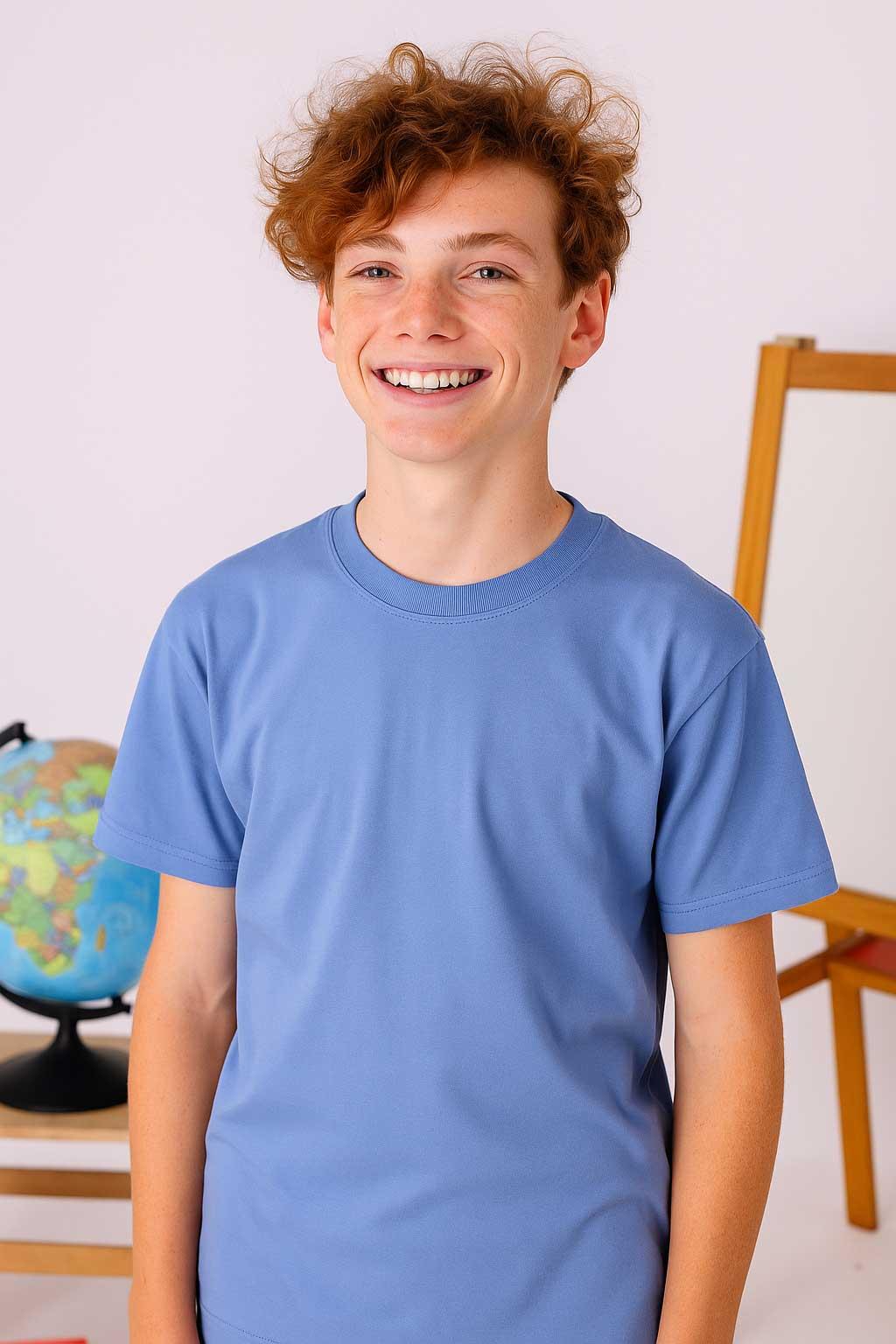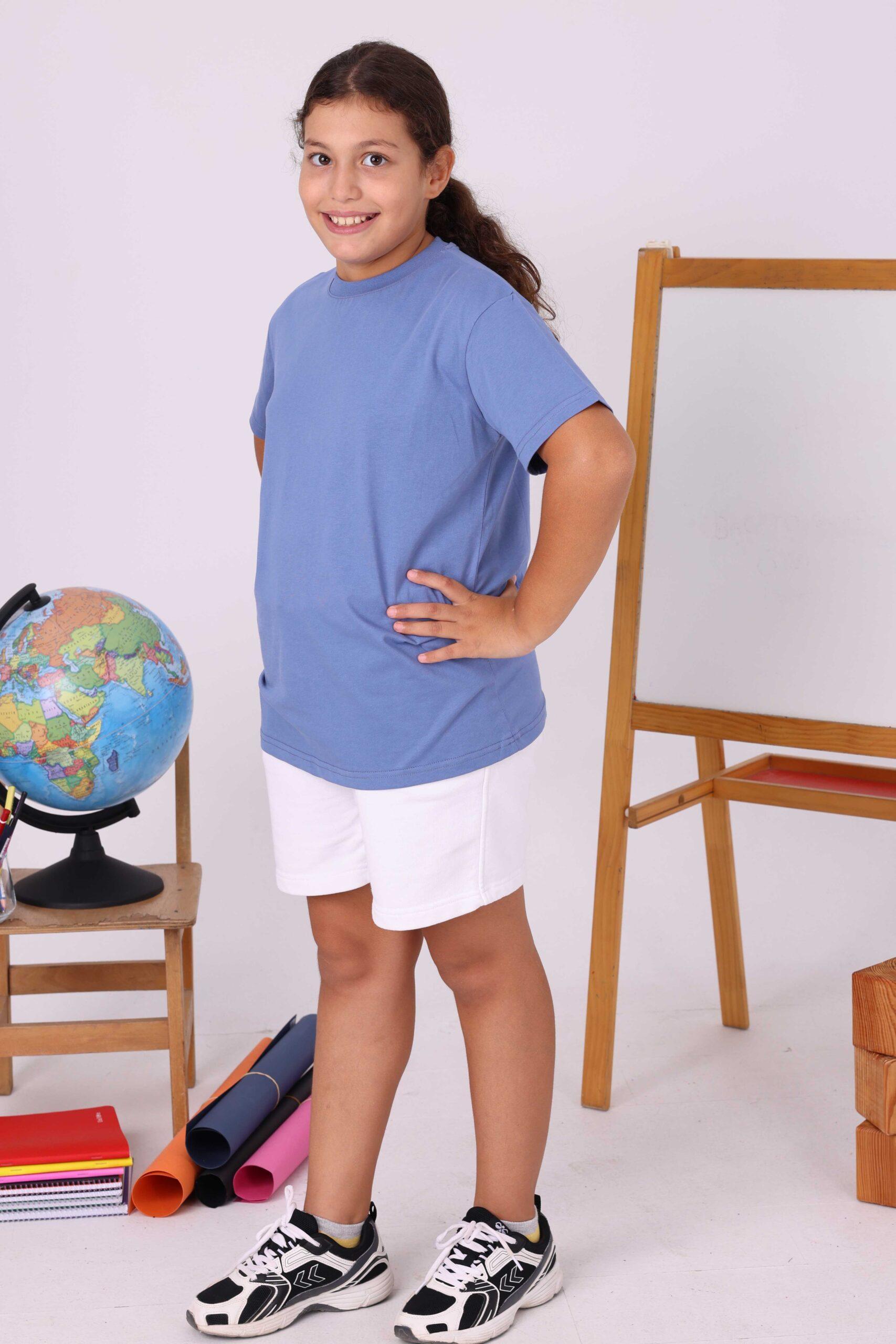 Günümüzde birçok okul, öğrencilerin daha düzenli bir görünüme sahip olması için baskısız ve desensiz kıyafetleri tercih ediyor. Bu tişört, hiçbir baskı ya da logo bulundurmadan, tamamen düz pastel mavi rengiyle öne çıkıyor. Böylece veliler, okul yönetmeliğine uygun bir ürün satın aldıklarından emin olurken, çocuklar da sade bir şıklıkla okula gidiyor.