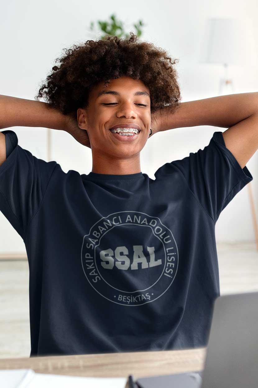 Tasarıma gelirsek… Göğüs kısmında yer alan büyük “SSAL” baskısı ve çevresini saran “Sakıp Sabancı Anadolu Lisesi – Beşiktaş” yazısı, okul ruhunu taşımanın en şık yollarından biri. Hem sade hem dikkat çekici! Ne fazla iddialı ne de sıkıcı. Modern tipografisiyle gençlerin tarzına uygun olarak hazırlanmış bu logo tasarımı, arkadaş ortamlarında da “Bu tişört nereden?” sorusunu sıkça duyacağın türden.