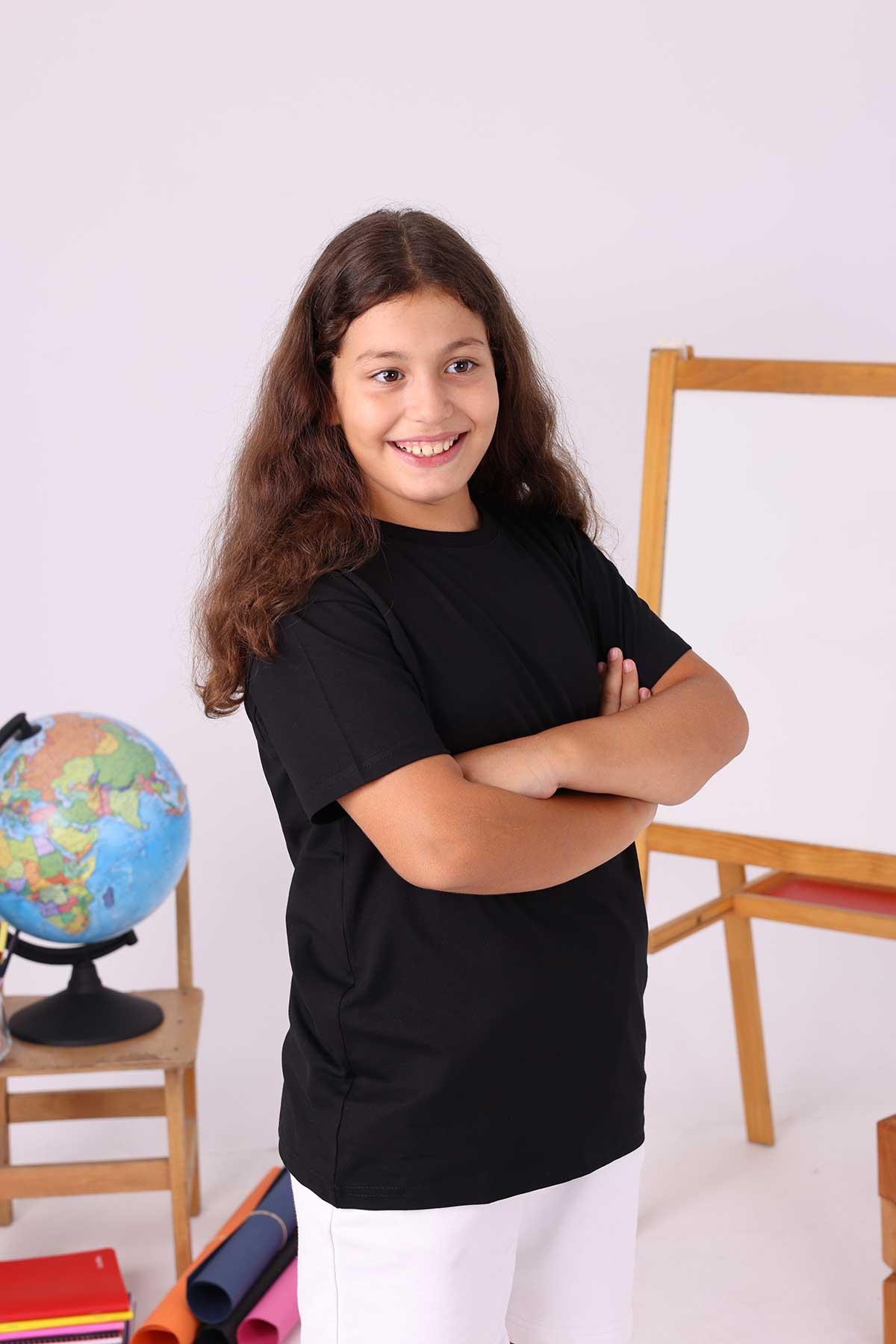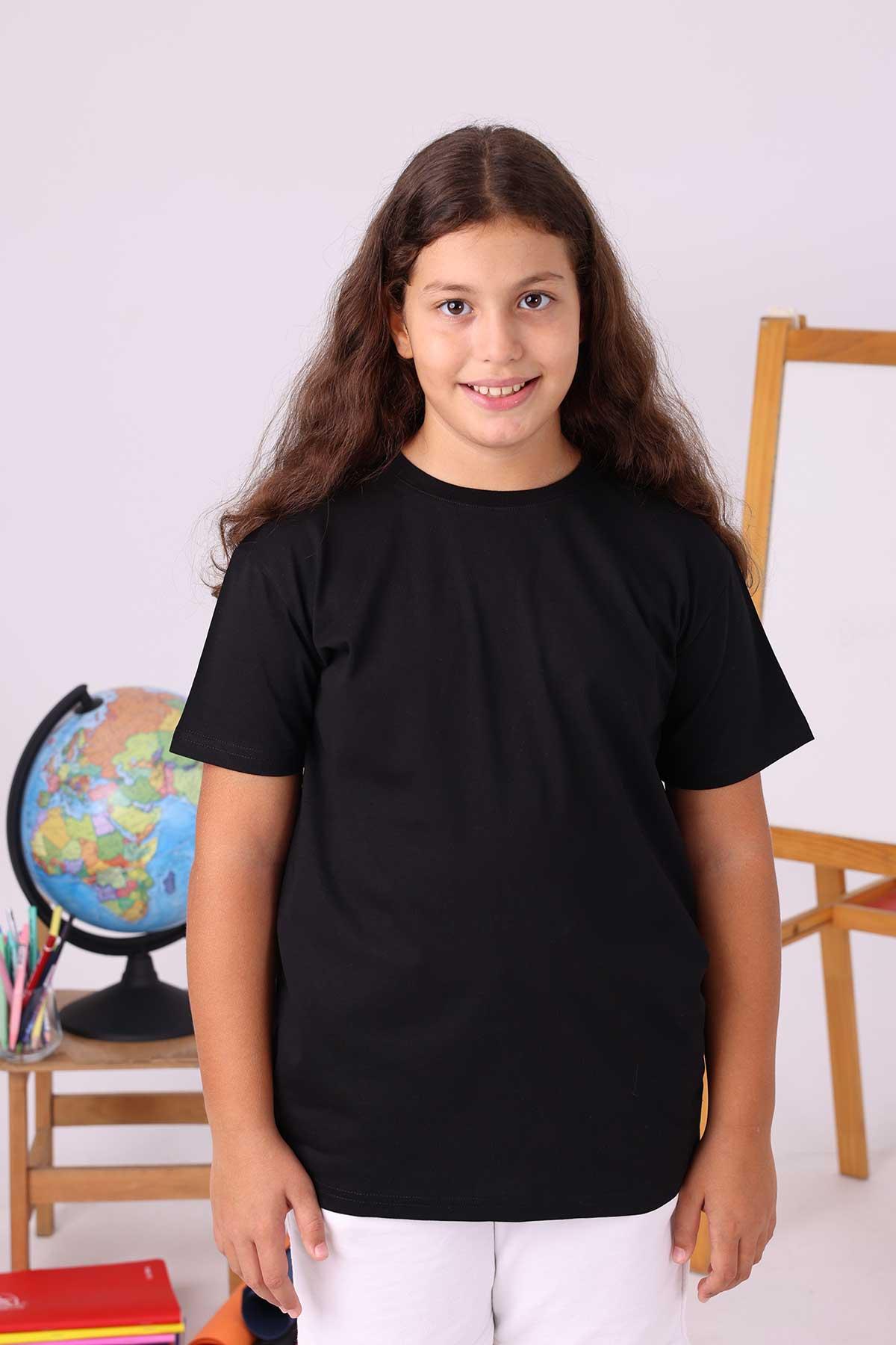 Siyah Sıfır Yaka Baskısız Çocuk Tişört – 28/1 Penye Süprem %100 Pamuk, Okul Yönetmeliğine Uygun Konfor ve Şıklık