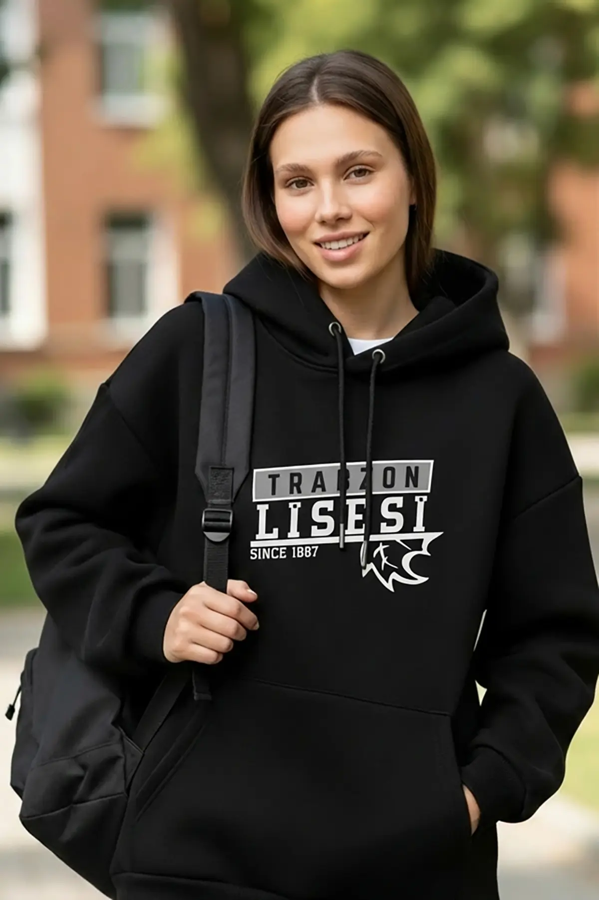 Trabzon Fen Lisesi siyah hoodie modeli, güçlü tasarımı ve kaliteli üretimi ile öğrencilerin hem okulda hem günlük hayatta rahatlıkla kullanabileceği modern bir okul ürünüdür.