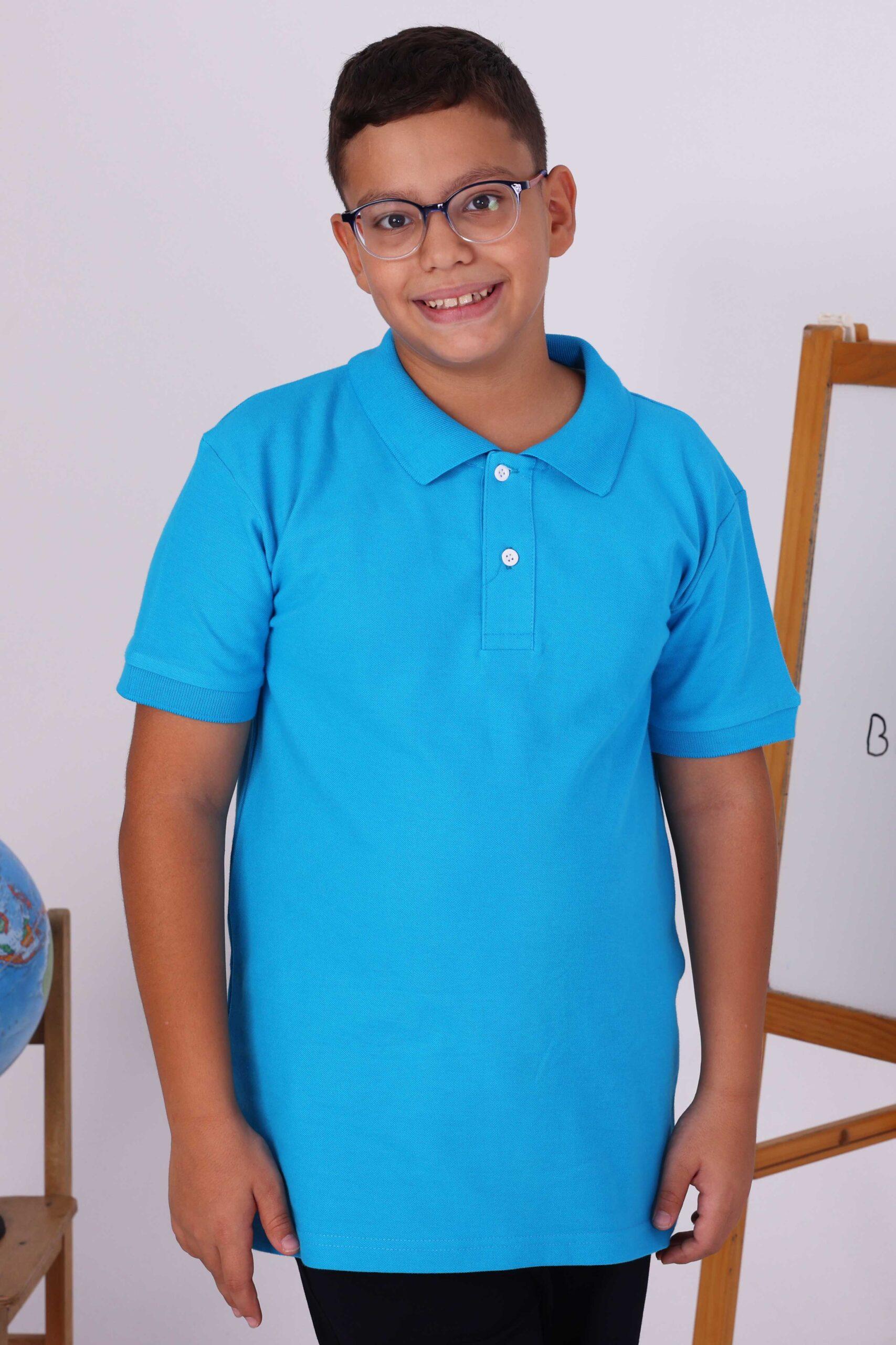 Turkuaz Çocuk Polo Yaka Kısa Kollu Tişört – Yönetmeliğe Uygun Okul Forması