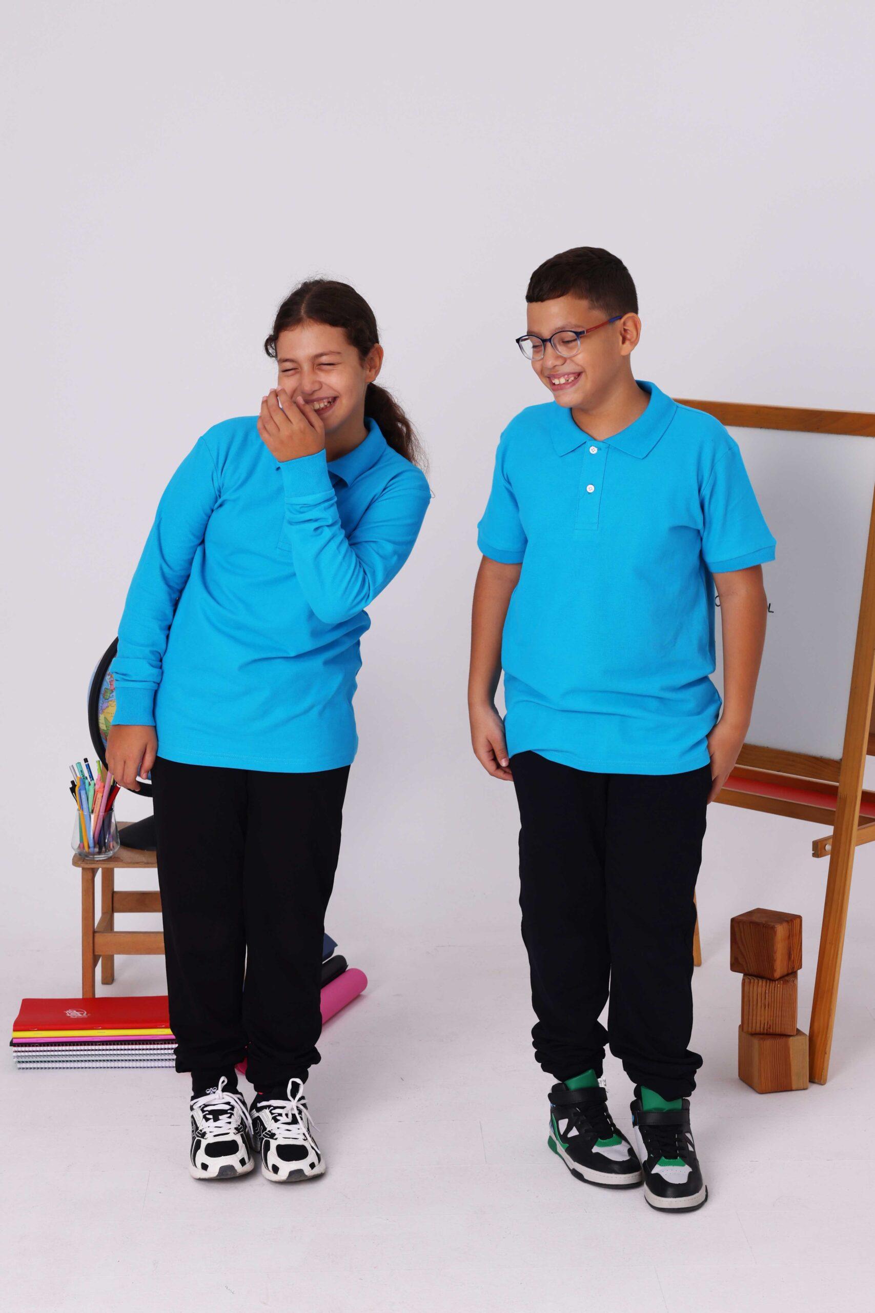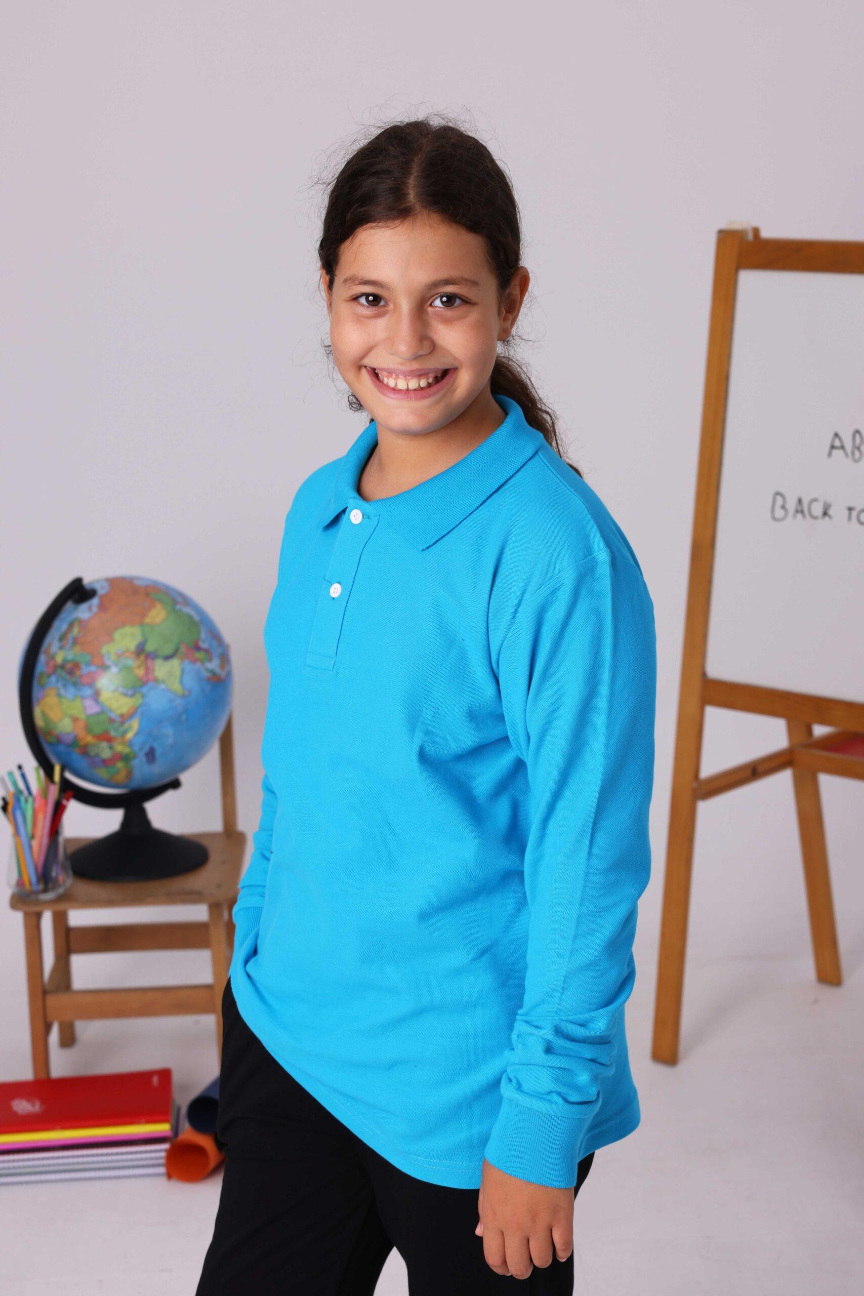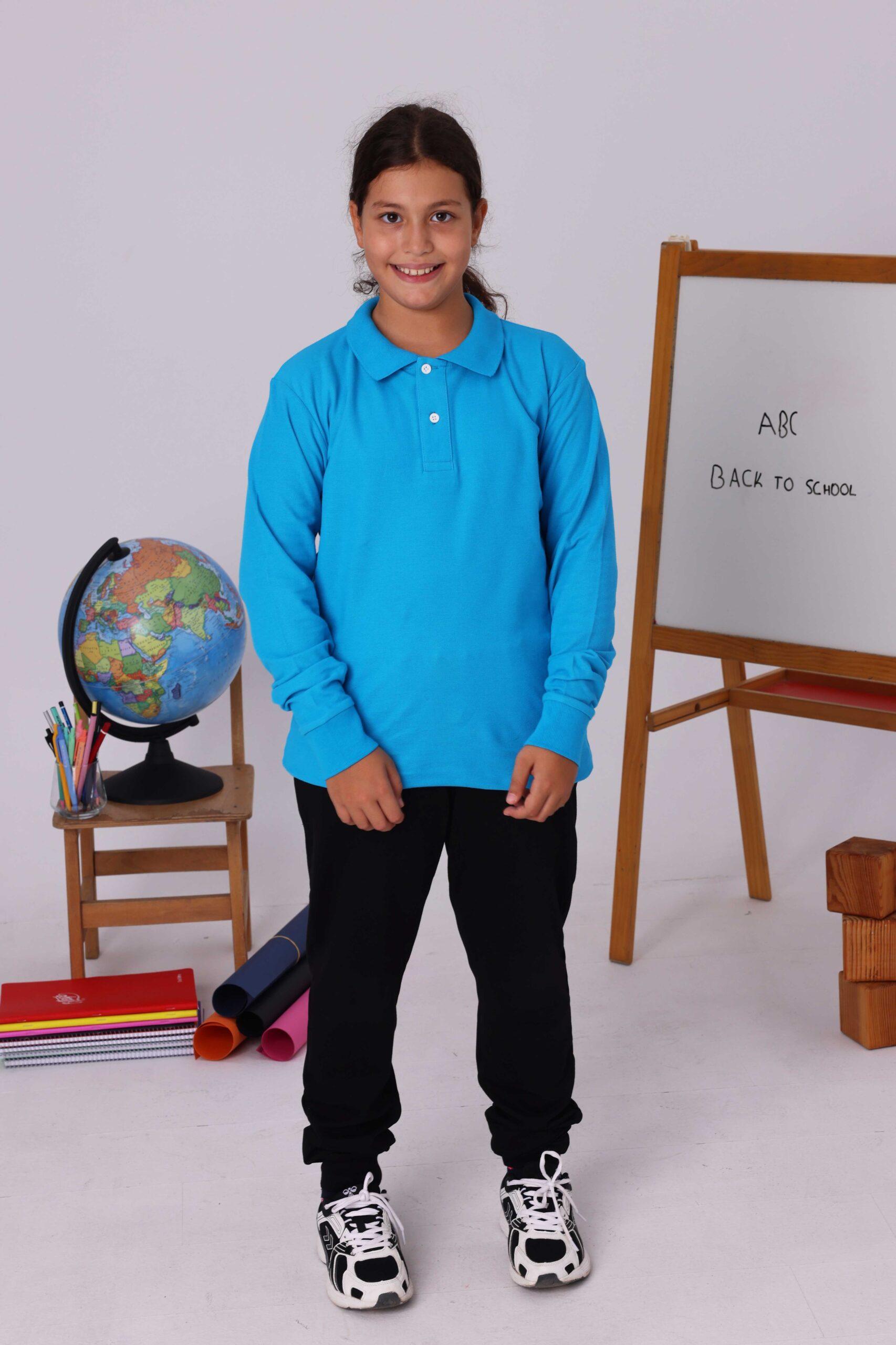 Turkuaz Çocuk Polo Yaka Uzun Kollu Tişört – Yönetmeliğe Uygun ve Konforlu Okul Forması