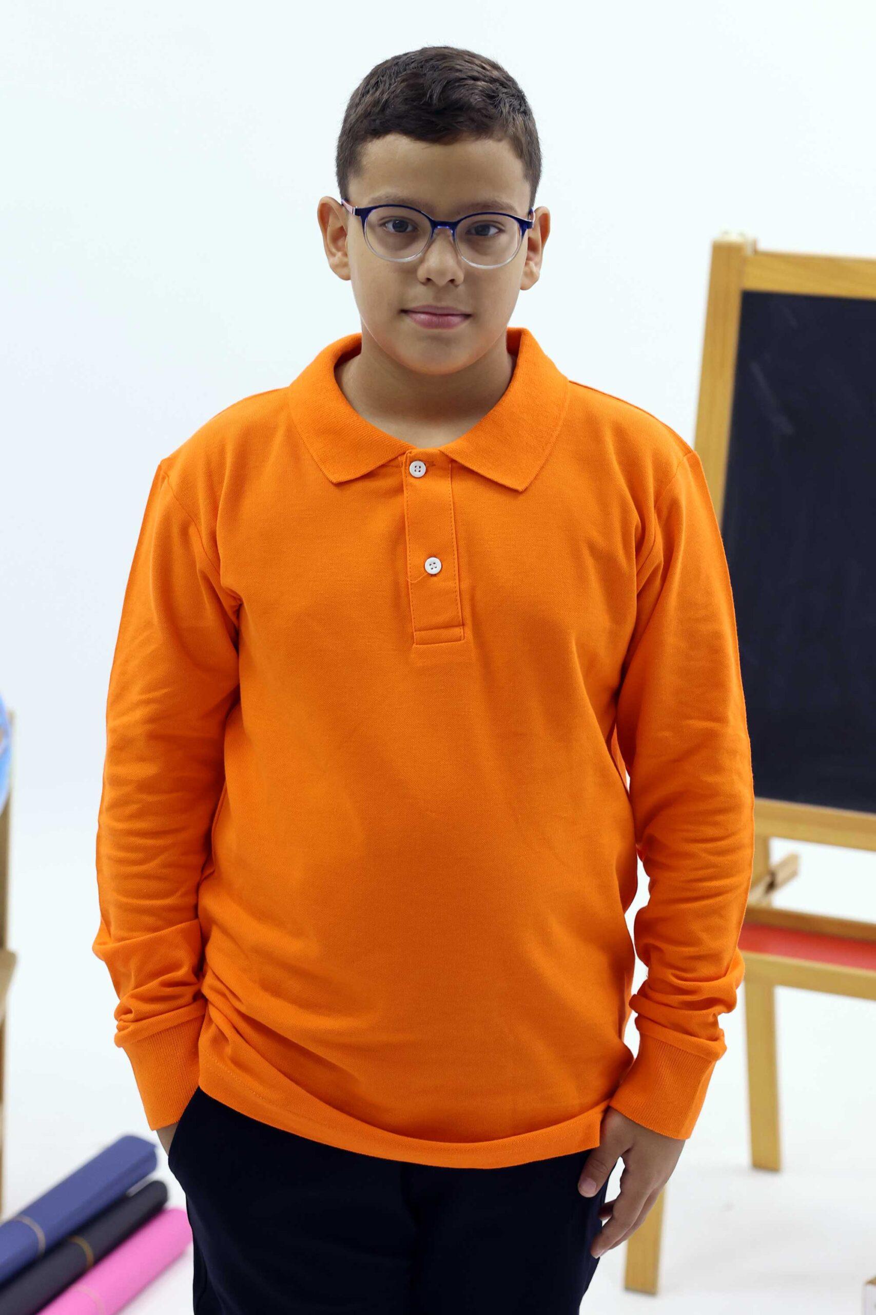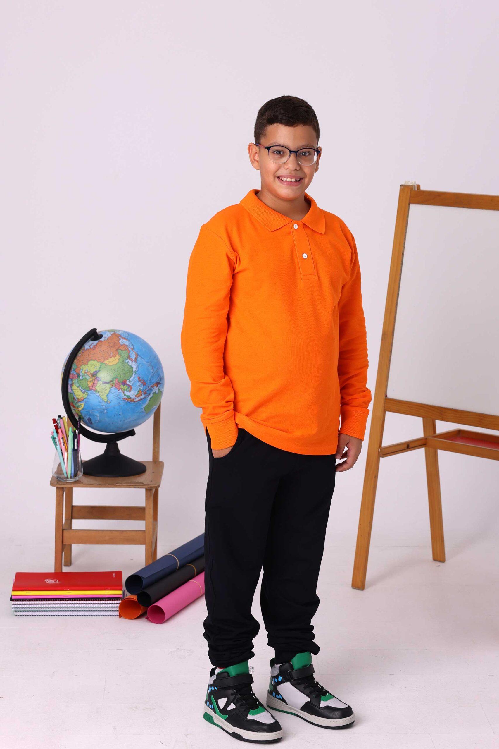 Turuncu Çocuk Unisex Polo Yaka Uzun Kollu Tişört – %100 Pamuk Okul Kıyafeti