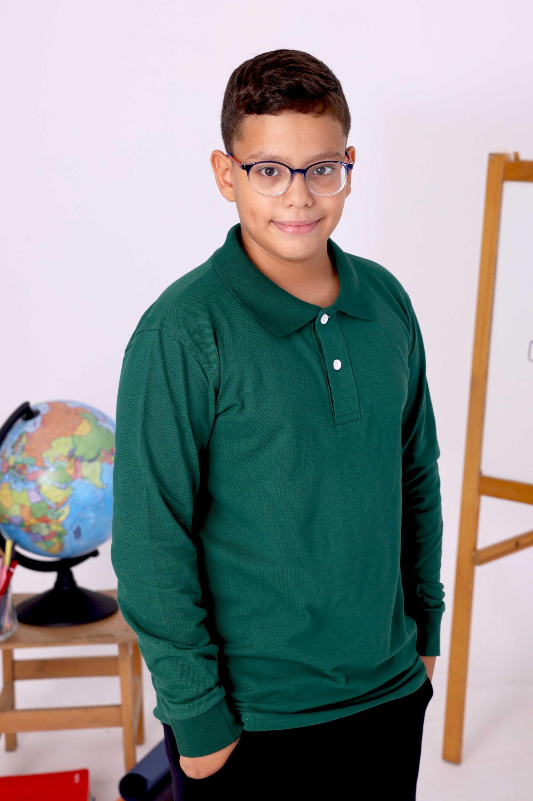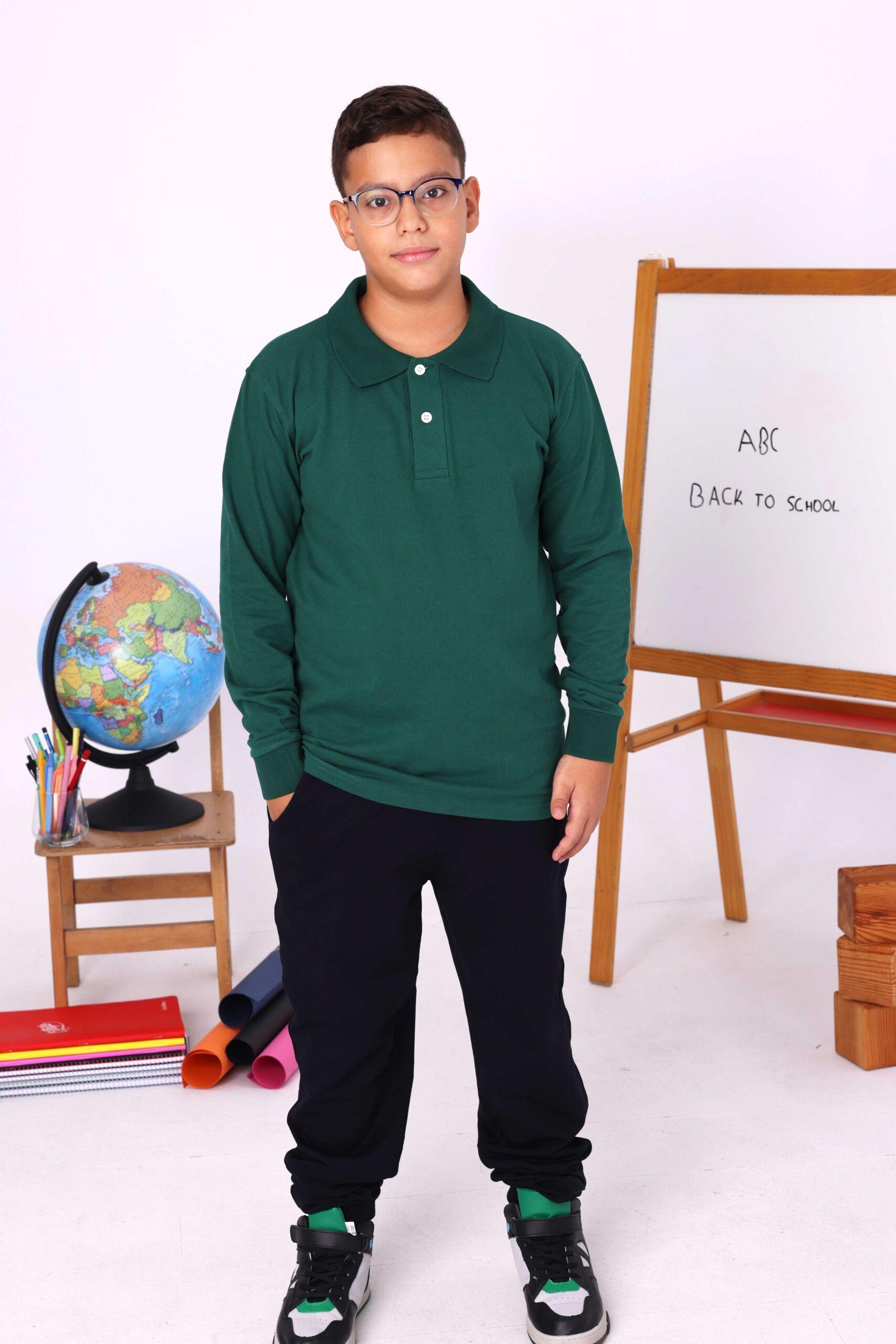 🟢 Yeşil Çocuk Polo Yaka Uzun Kollu Tişört – Okul Forması